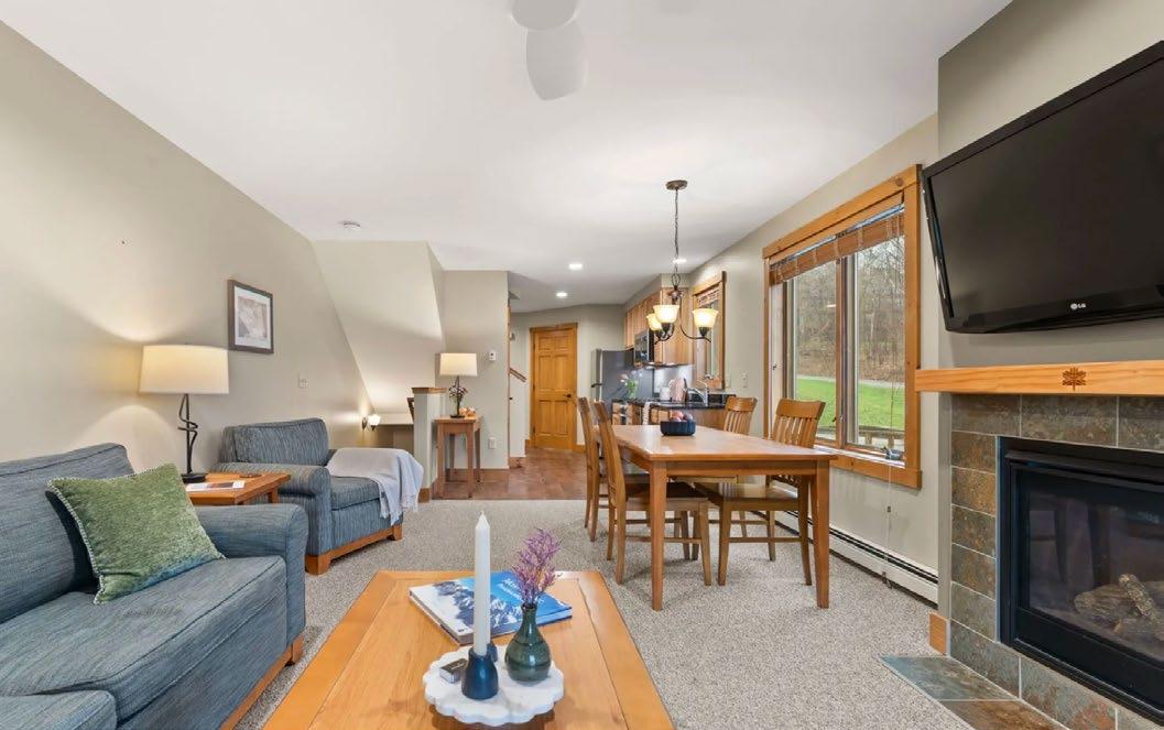 Rarely available and highly sought-after three-bedroom condo in the heart of Waterbury, offering the perfect blend of comfort, convenience, and the quintessential Vermont lifestyle. This beautifully designed home is filled with abundant natural light and boasts panoramic views from multiple vantage points. Ideally located just minutes from Blush Hill Golf Course, the Waterbury Reservoir, Stowe Mountain Resort, and Sugarbush Resort, outdoor recreation is at your doorstep year-roundfrom skiing and riding to mountain biking, hiking, and paddling.The main level features a welcoming living room with a gas fireplace, flowing seamlessly into the dining area and open kitchenideal for entertaining. S
