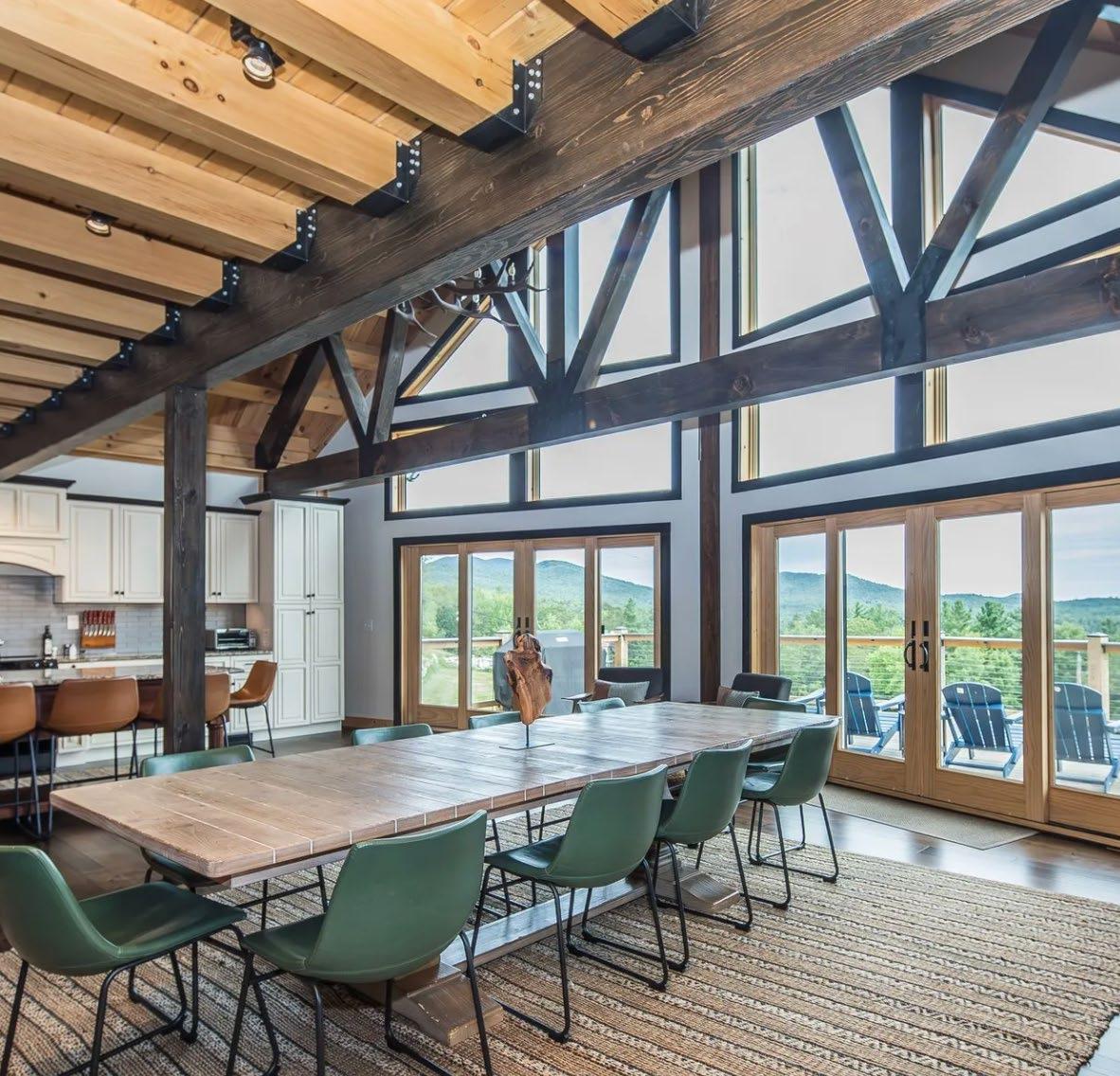 pine, exposed trusses, and vast windows erase the boundary between indoors and out. Morning light floods dining spaces framed by mountain vistas, while lofted living rooms echo with laughter and the scent of mulled cider. Even in their grandeur, these homes remain intimate — designed as sanctuaries rather than showcases.