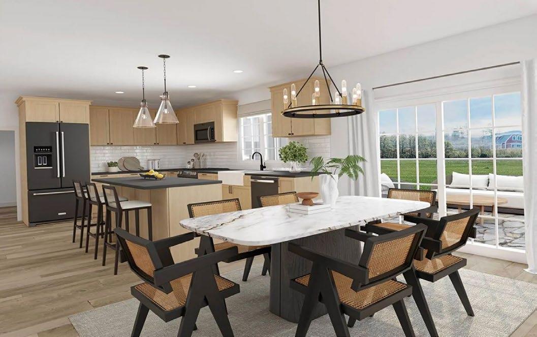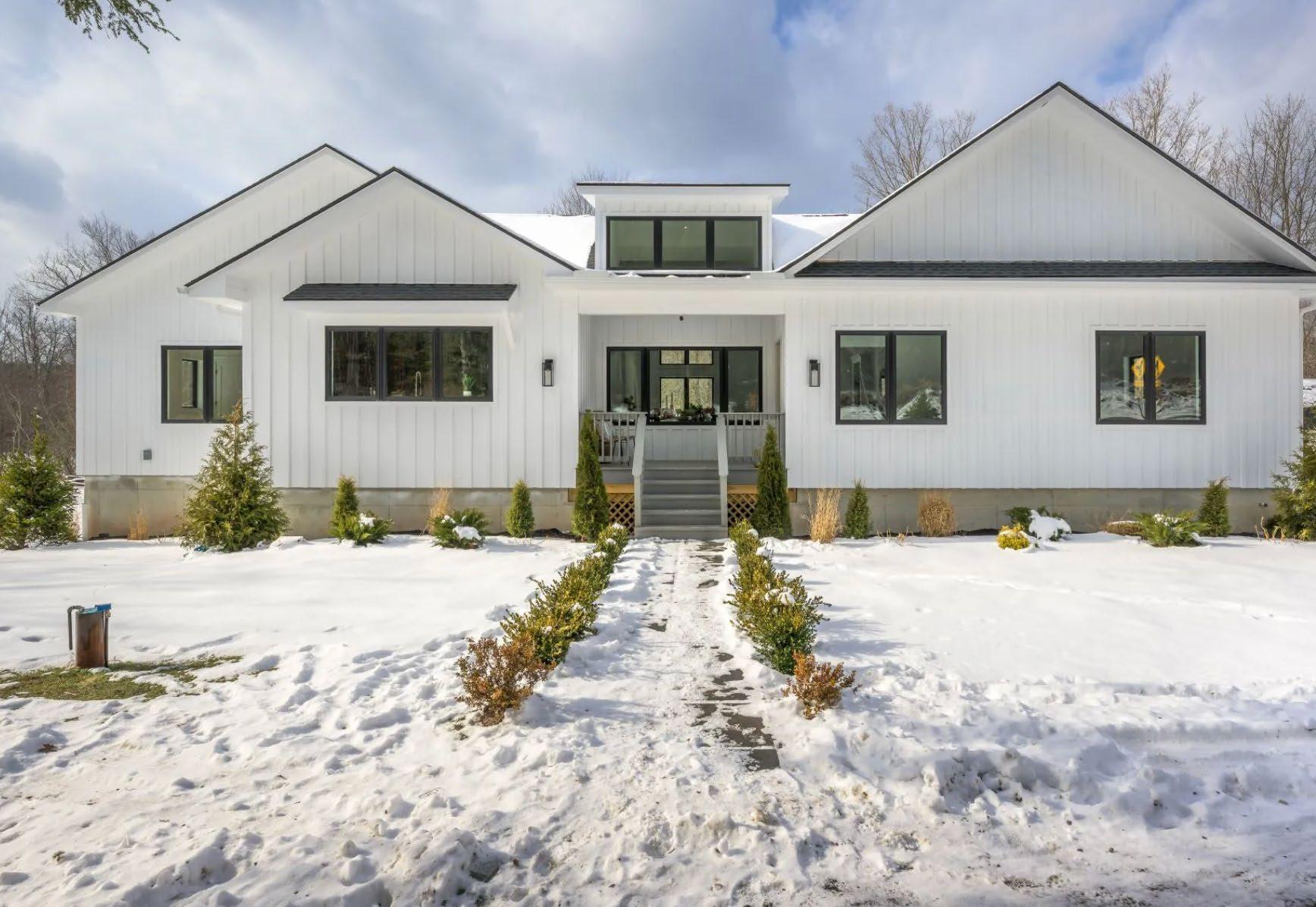 Modern Mountain Luxury / Windham, New York Experience contemporary mountain living at its finest in this exceptional new-construction residence, perfectly positioned just one mile from the Village of Windham. Thoughtfully designed and impeccably built, this lightfilled retreat captures the essence of refined modern living in the heart of the Catskills. The home’s sophisticated open layout features four spacious bedrooms and four and a half baths, each space designed with comfort and style in mind. The main-level primary suite serves as a serene escape, complete with a spalike en-suite bath and tranquil views of the surrounding landscape. Vaulted ceilings and expansive windows fill the home with natural light, seamlessly blending indoor and outdoor living.