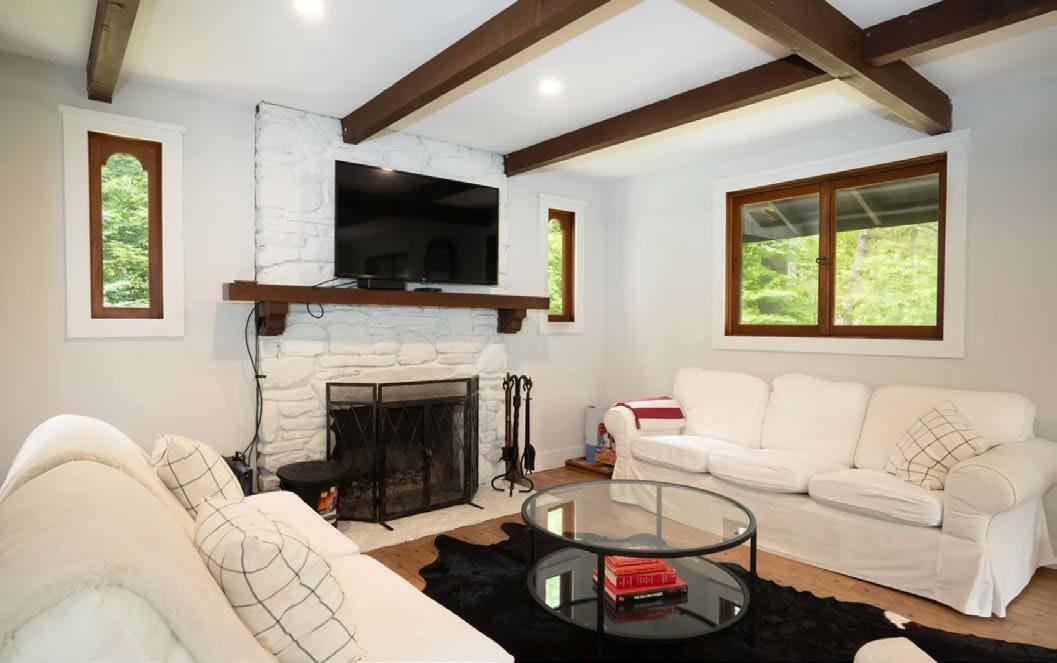 Fall in love with this artfully reimagined and expanded 1930 farmhouse, privately set on a gentle hill just moments from the heart of Woodstock. Rich in history and character, this special home was once owned by Michael Lang, the legendary founder of the 1969 Woodstock Festival—adding a rare and meaningful connection to the town's iconic past. Thoughtfully renovated, the home offers a beautiful balance of vintage charm and modern convenience. A stunning new open-concept addition features dramatic vaulted ceilings and walls of windows that flood the space with natural light and open seamlessly to a welcoming porch—perfect for entertaining or quiet moments surrounded by nature. The flowing floor plan is ideal for today's lifestyle and effortless gatherings.