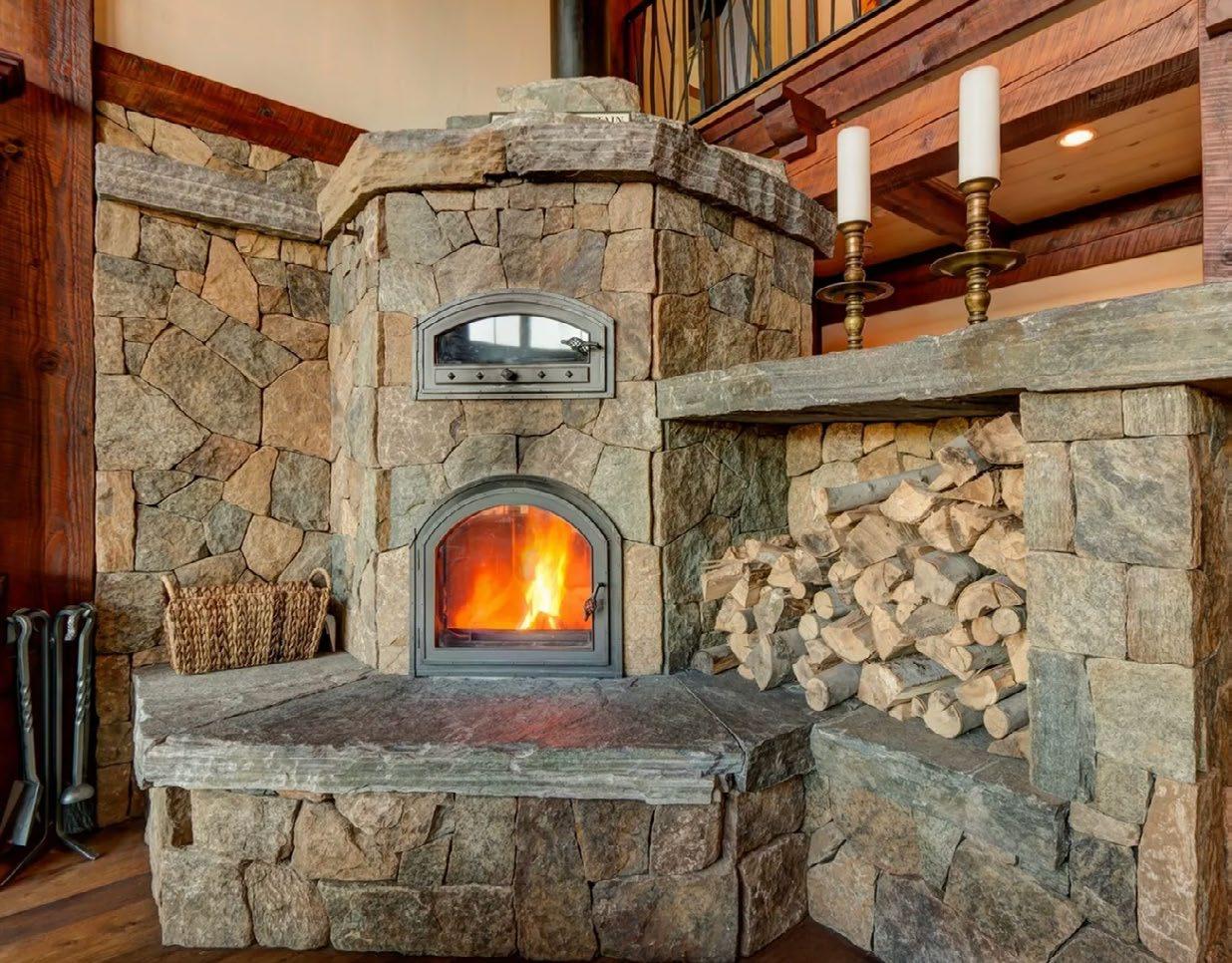 The modern mountain home blends rugged craft with quiet sophistication — a harmony of firelight, timber, and stone.