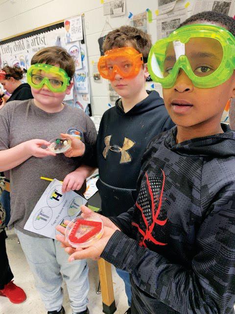 Pictured above on the left, are some of the Appomattox Middle School students participating in the STEM slime mold project in Felicia Rovenolt’s sixth grade Life Science class. Shown above at the right, is a tray from the STEM slime mold project in Felicia Rovenolt’s sixth grade Life Science class at Appomattox Middle School. On opposite page, shown is the Physarum life cycle, part of what is being taught in the STEM slime mold project in Felicia Rovenolt’s sixth grade Life Science class at Appomattox Middle School. Photos contributed by Felicia Rovenolt.