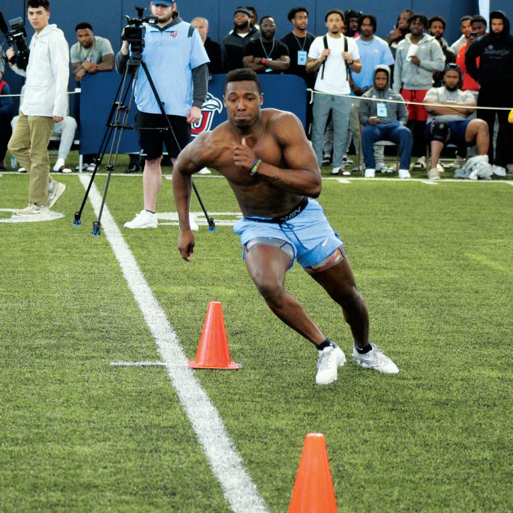 Scruggs had been preparing for Pro Day at LU’s campus under the tutelage of Flames strength and conditioning coach Chad Scott and his staff, whom he referred to as “tremendous guys and really just top class,” practicing drills that are specific to Pro Day. In