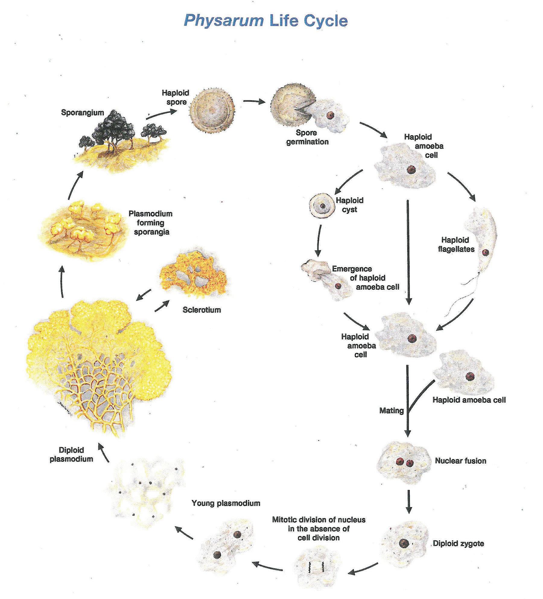 Students are familiar with the seemingly overnight appearance of yellow or orange “slime “ on a mulch pile or in a garden bed. Slime molds are not actually molds or even fungi; rather, they are classified as amoeboid protozoans.