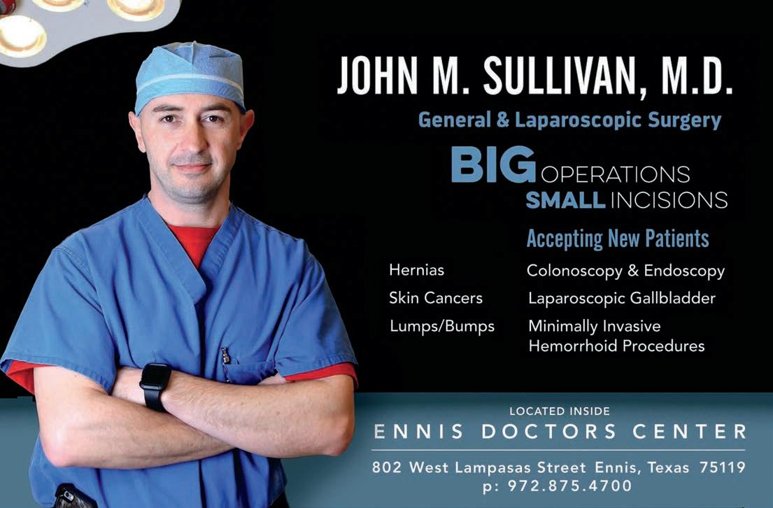 preparations are underway to transform historic downtown Ennis into a destination for making holiday memories with friends and family. The season kicks o with the Lights of Ennis Parade and Block Party and Christmas Bluebonnet Market on December 1st. Downtown will come to life the remainder of the month with magical events including snow hill tubing, holiday roller skating, Lucky’s CC Car Show and Toy drive, carriage rides, and the elf seek and find game. Our beautiful downtown will look straight out of a allmark Christmas movie with stunning holiday d cor, snow and plenty of photo ops. Thank you Ennis egional Medical Center and Pegasus Dodge for your generous donations that makes these events and activities possible for our community.