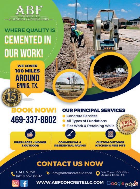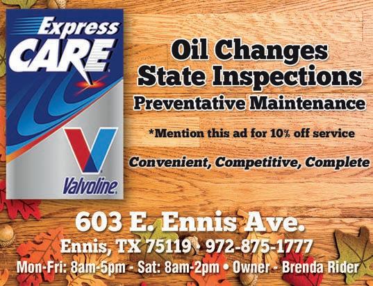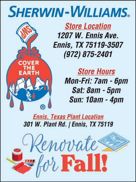 contact the Ennis Chamber of Commerce at 972-878-2625 or www. ennis-chamber.com.