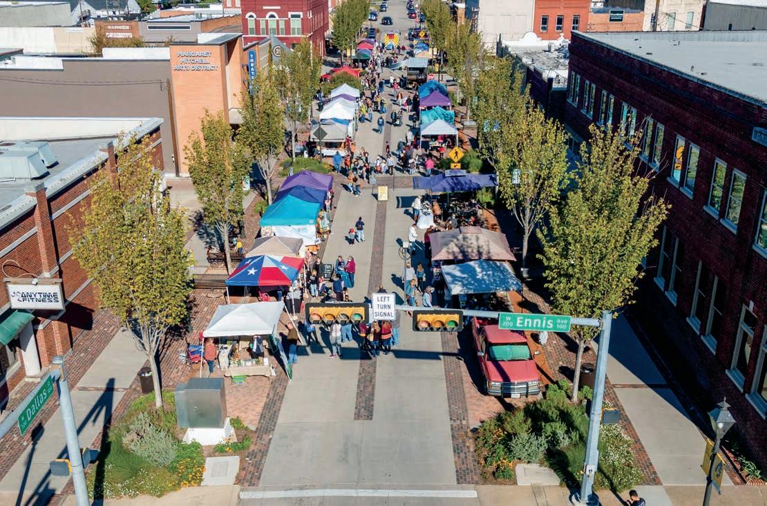 May 13, 2013 was the date when 13 local twisters ravaged the area, including one that strolled down midtown toward the east on Ennis Avenue. Once the e ects, which included the loss of vitality between McKinney and Main, had taken their toll, what rose from the collapsed heap of bricks was a new-found purpose. Ideas of rebuilding and restoring began to outnumber thoughts of vacating and starting over elsewhere.
