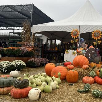 Image: “A festive welcome at Goebbert’s Farm in Pingree Grove where pumpkins, gourds, and autumn blooms set the stage for the season’s harvest cheer.”
