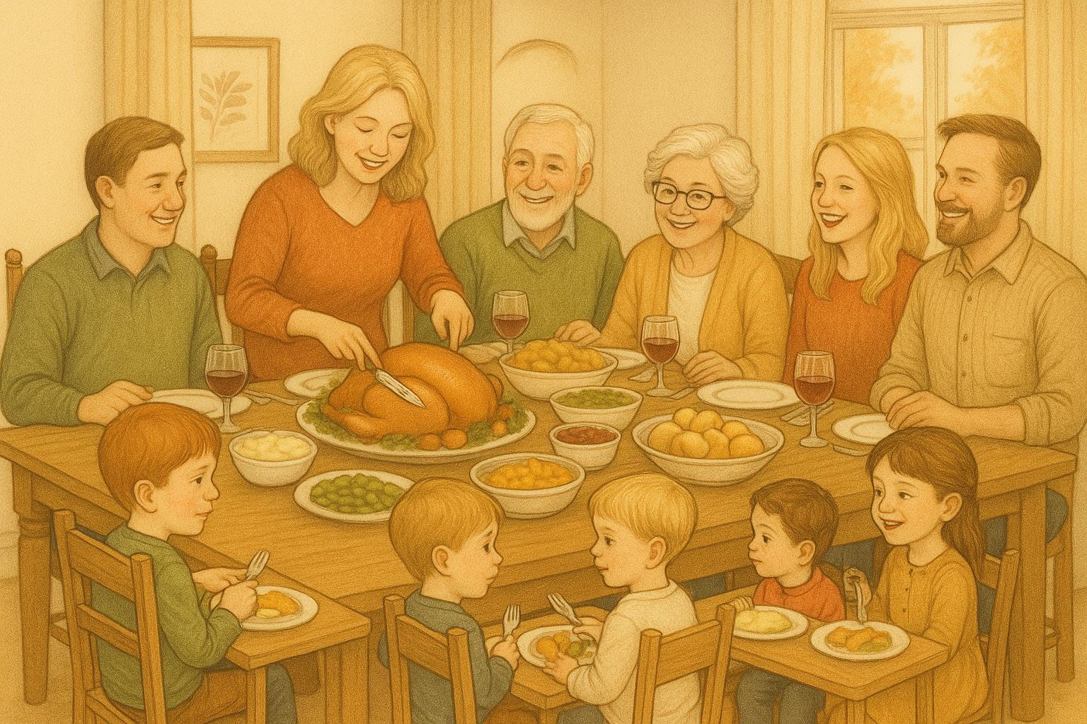 “Thanksgiving at Linda’s childhood home: laughter, warmth, and generations gathered around the table, where love was always the first course served.”