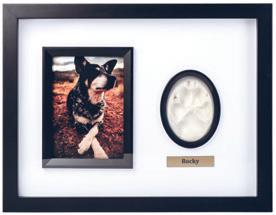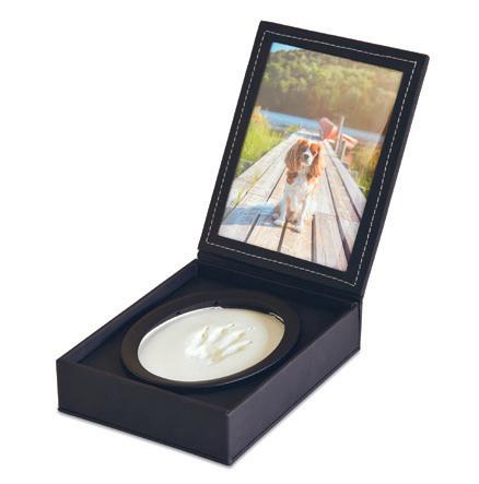 Your pet’s paw in clay, presented in a photo case for you to treasure forever.