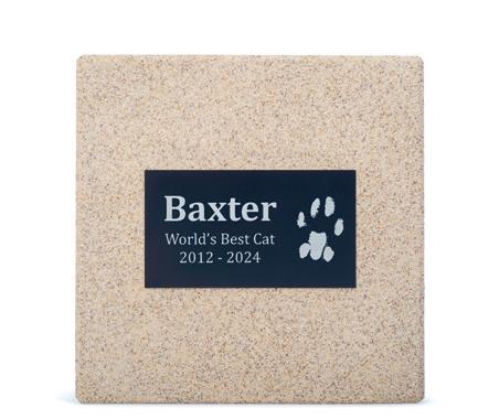 This small sandstone garden plaque creates a lasting memento to your beloved pet offering a loving reminder of the life you shared. Please refer to page 41 for engraving options (up to three lines of engraving available). 15 x 15 x 2cm.