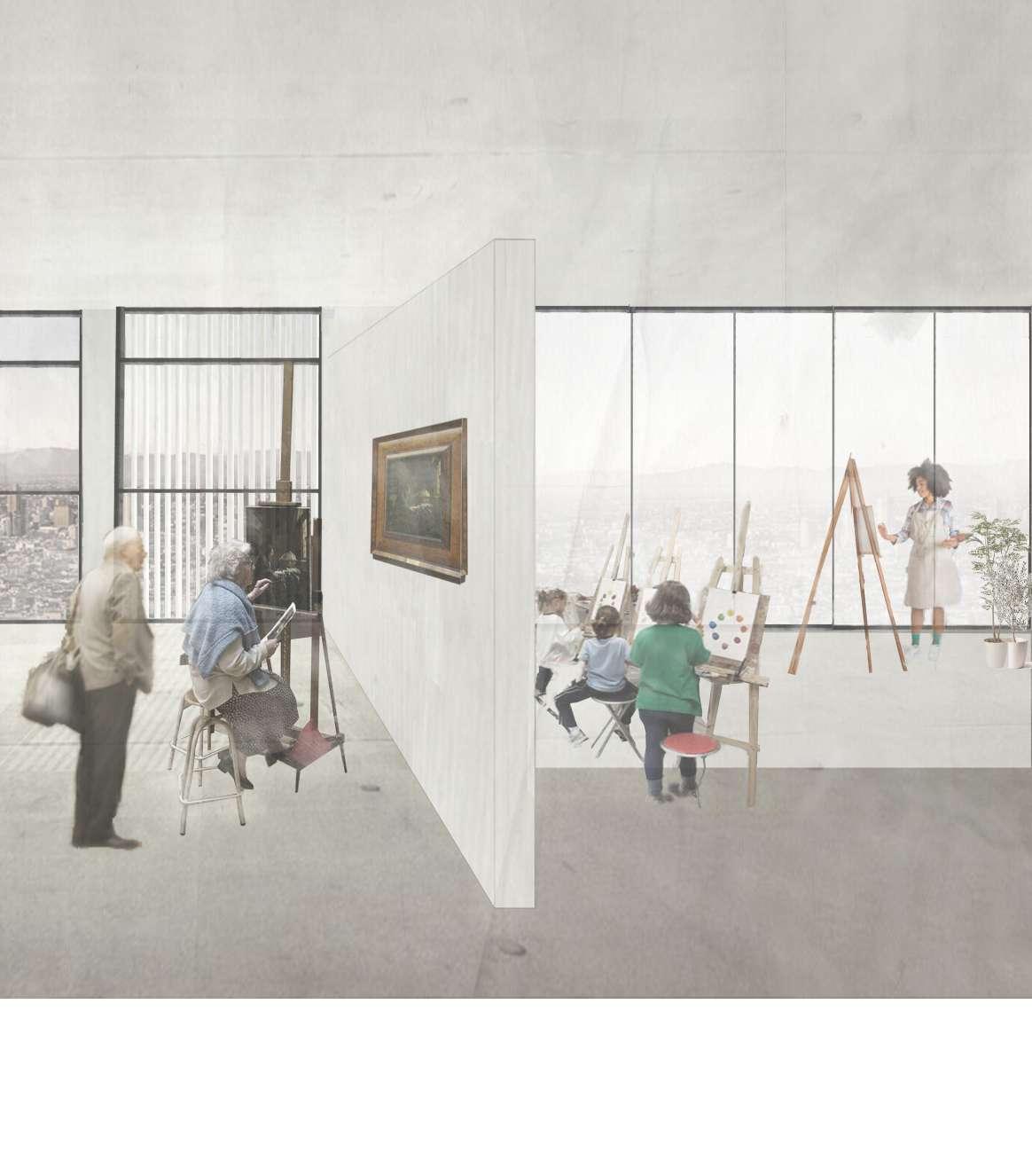 The complex, meets the daily needs of a number of different individuals, including residents and temporary guests and inhabitants. The building responds to public needs with a library, an art room, a coworking area, an exhibition room, a conference room and the public roof.