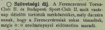 Végül nem lett új mérkőzés, az FTC II. csapata az első Szövetségi-díjért folyó küzdelmekben 5 csapat közül a 3. helyen végzett.