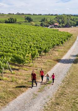 terroir f-Aussichtspunkten, den magischen Orten des Frankenweins, und zahlreichen Rastmöglichkeiten, an denen sich der Blick über die Region weitet. Doch der Weg bietet nicht nur etwas für das Auge: die vielen, gastfreundlichen Iphöfer Winzer laden im Anschluss an die Wanderung zu Gesprächen, einem Glas Wein oder geführten Wanderungen und Besichtigungen ein. Geeignet ist der Weg für die ganze Familie und wer mag, kann die Weinentdeckerrunde mit den zahlreichen anderen Pfaden, Abstechern und Wanderwegen kombinieren.