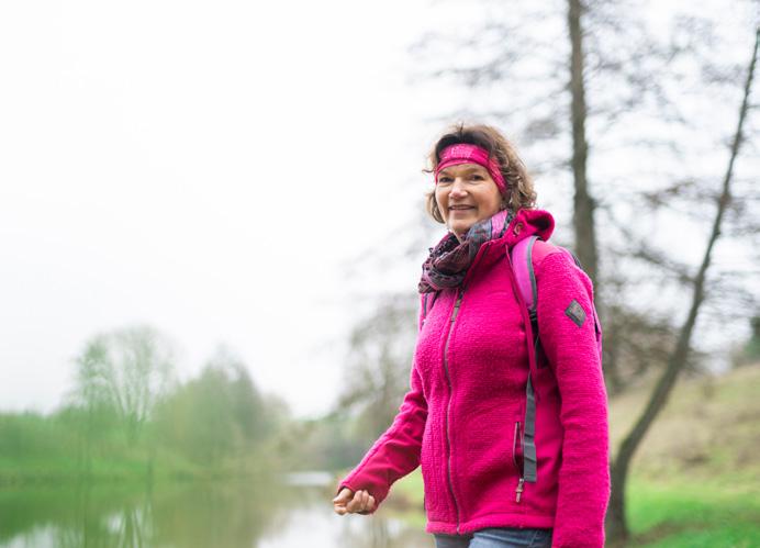 sagt sie. Weiter geht’s erst durch den Wald, dann über Feldwege nach Stadelhofen. »Dort mache ich Rast und wandere auf dem K5 nach Karlstadt zurück.« Kurz davor ist ein letzter Höhepunkt der Wanderung erreicht: die Ruine Karlsburg mit ihrem beeindruckenden Blick hinunter auf Main und Altstadt. »Meinen Wandertag lasse ich dort bei einem Gläschen Wein und einem leckeren Essen gemütlich ausklingen.«