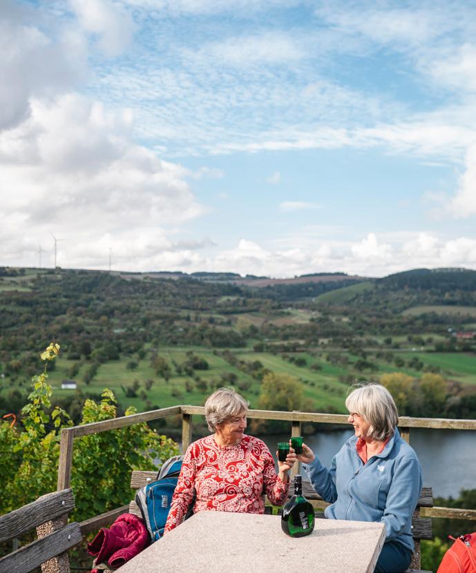 Was aber macht den Weinparadiesweg für Kerstin Kloha aus? »Ich habe mich in die kleinen Weinbergshütten verliebt. Jede ist ein Unikat. Früher nutzten die Winzer sie als Lagerraum oder Schlechtwetterschutz. Heute sind sie schöne Zeitzeugen.« Und weiter: »Über die Jahre ist der Weinparadiesweg einfach ,mein Weg‘ geworden«, sagt Kerstin Kloha. »Oft laufe ich Teilstücke als Abend- oder Sonntagsspaziergang, magische Sonnenuntergänge inklusive.«