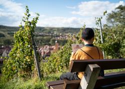 Der Lieblingsplatz von Claudia Bellanti, der Leiterin der Tourist Information, ist der Geschichtsweinberg: »dass sich die Perspektive mit jeder Stufe nach oben verändert«, schwärmt die gebürtige Unterfränkin. Seit 24 Jahren lebt, arbeitet und genießt sie diese verzauberte Region, in der »die Weinberge Bilder in die Landschaft malen«.