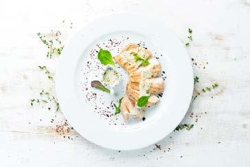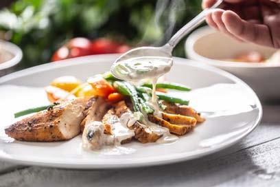 Поднесете пилешкото филе върху канапе от ориз или паста, гарнирано със сметановия сос.