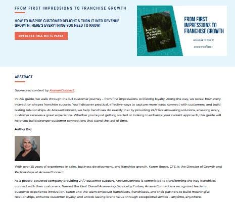 The white paper program offered by the IFA has been incredibly valuable to our organization, allowing us to generate new leads while providing thought leadership content focused on helping franchisors and franchisees grow their businesses.”