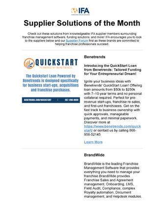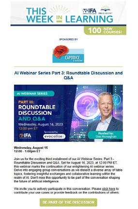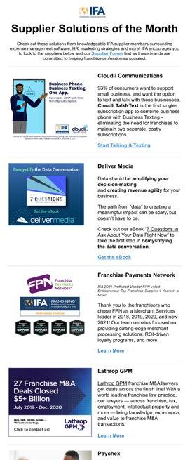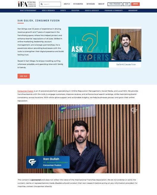 Elevated promotion. Our Ask the Experts page and featured companies will be consistently promoted through IFA’s marketing channels including e-blasts, newsletters, publications, and social media.