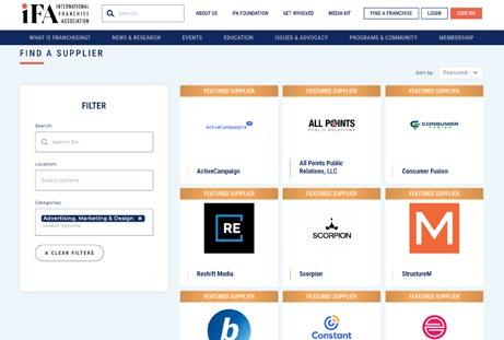 IFA is a trade association representing 1,200+ franchise brands and their franchisees and 600+ supporting suppliers. We are the only organization that promotes, protects, and strengthens the franchising business model worldwide. Through best in class educational events and webinars, widely distributed publications, and a proven government relations team, we accomplish goals of our individual members and the collective industry.