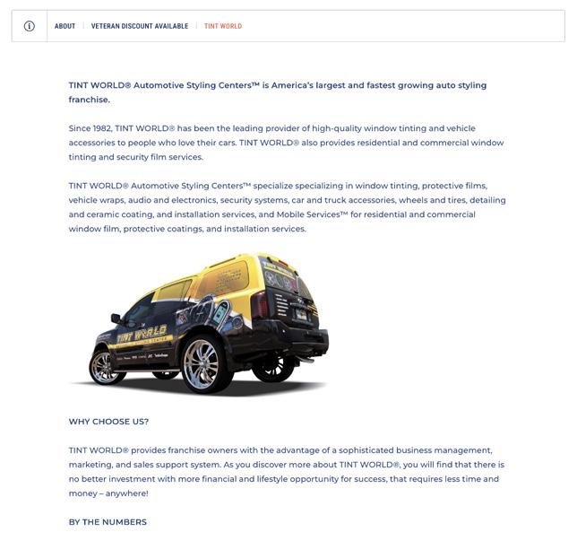 2. Enhanced company profile — includes a direct link to advertiser’s franchise development site