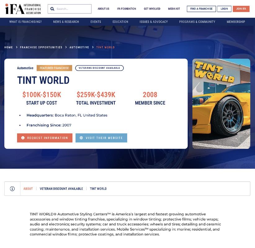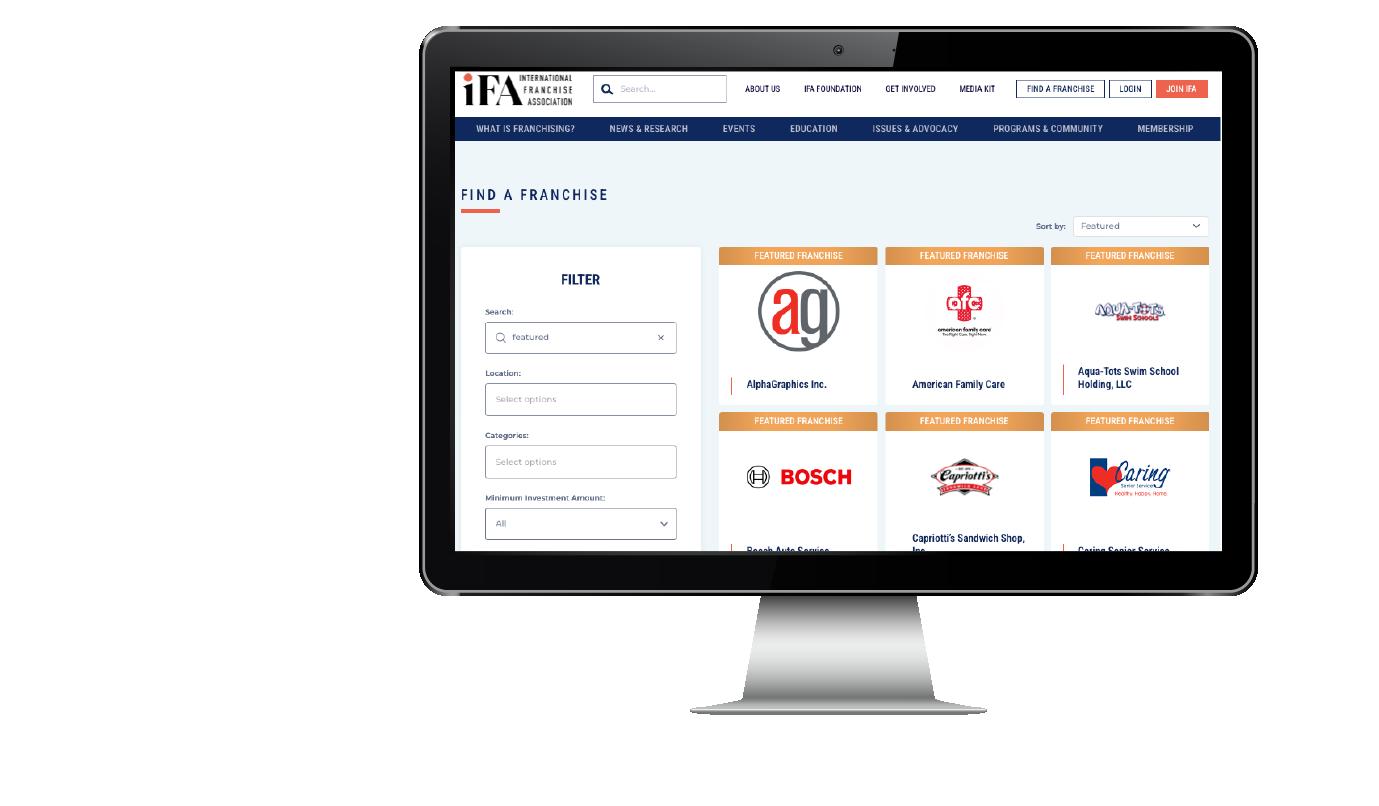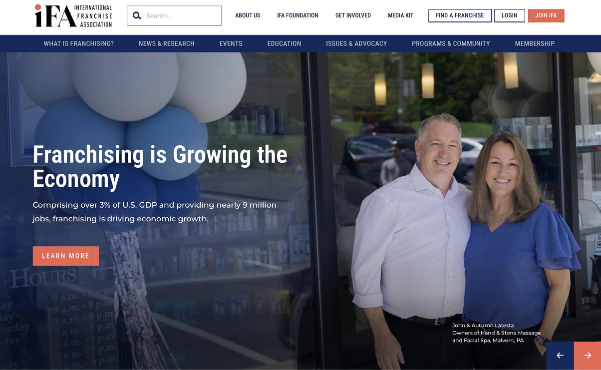 IFA is a trade association representing 1,200+ franchise brands and their franchisees and 600+ supporting suppliers. We are the only organization that promotes, protects, and strengthens the franchising business model worldwide. Through best in class educational events and webinars, widely distributed publications, and a proven government relations team, we accomplish goals of our individual members and the collective industry.