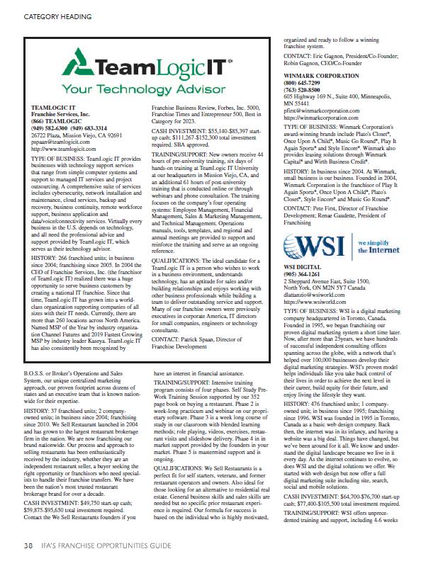 • Franchise Opportunities Guide - 2 Full Page Ads (in next 2 editions)