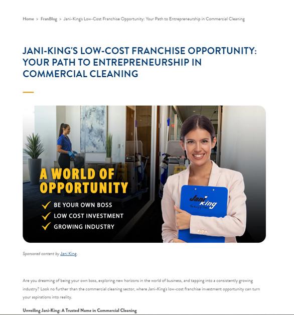 Promote your brand and highlight a series of franchisees, or other noteworthy content to potential buyers through this 4-part series as a “Featured Blogger” on franchise. org. Featured blog pinned each week to the franchise.org homepage for 4 consecutive weeks.