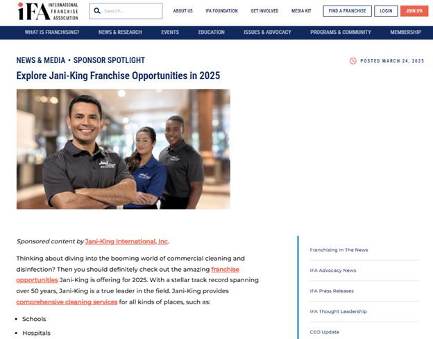 Promote your brand to franchise opportunity seekers on IFA’s Franchise Opportunities Blog. Describe your system and its culture in your own words through this exclusive native format. You can even add your own franchise development video to your blog!