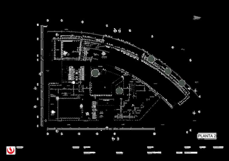 Dibujo de planimetría de edificio de oficinas.