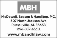Saidsaleismadeforthepurposeofpayingthemortgage debtandcostofforeclosureand willbeconductedbyMcDowell, Beason,P.C.,AttorneysatLaw, P.O.Box818,Russellville,Alabama.