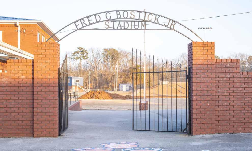 off-roading. “The school kept the stadium gate unlocked and let people from Red Bay go in and walk on the walking trail,” John explained. “One day my day was up at the school, meeting with superintendent and principal on some topic, and afterward he just drove in and went around the track in his vehicle.” Seeing the state of the facilities at the time, Fred marched right into Alan’s office and said, “The football stadium won’t do. There’s nothing been done to the football stadium in 25 years, and it just won’t do.”