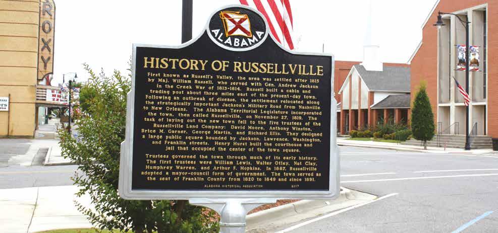 Before his death, Russell “saw the settlement become the most important town and the county seat of a newly created Franklin County in a newly organized area,” according to “The Heritage of Franklin County, Alabama.” Russellville was incorporated Nov. 27, 1819 – three weeks before Alabama became a state.