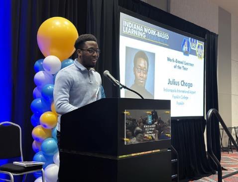 A recent example of this impact is Franklin College senior Julius Choga ’26, who was honored as Indiana’s College Work-Based Learner of the Year by the Institute for Workforce Excellence, a nonprofit subsidiary of the Indiana Chamber of Commerce. Julius, an international student from Harare, Zimbabwe, studying software engineering, received the award for his work during a summer internship with the information technology and cybersecurity team at the Indianapolis Airport Authority.