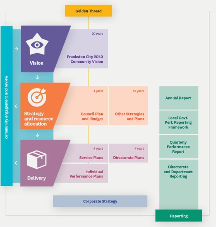 Strategies outlined in this plan align with the objectives contained in the Council Plan and feed into the budget and the Financial Plan, as well as other strategic planning documents under Council’s strategic planning framework.