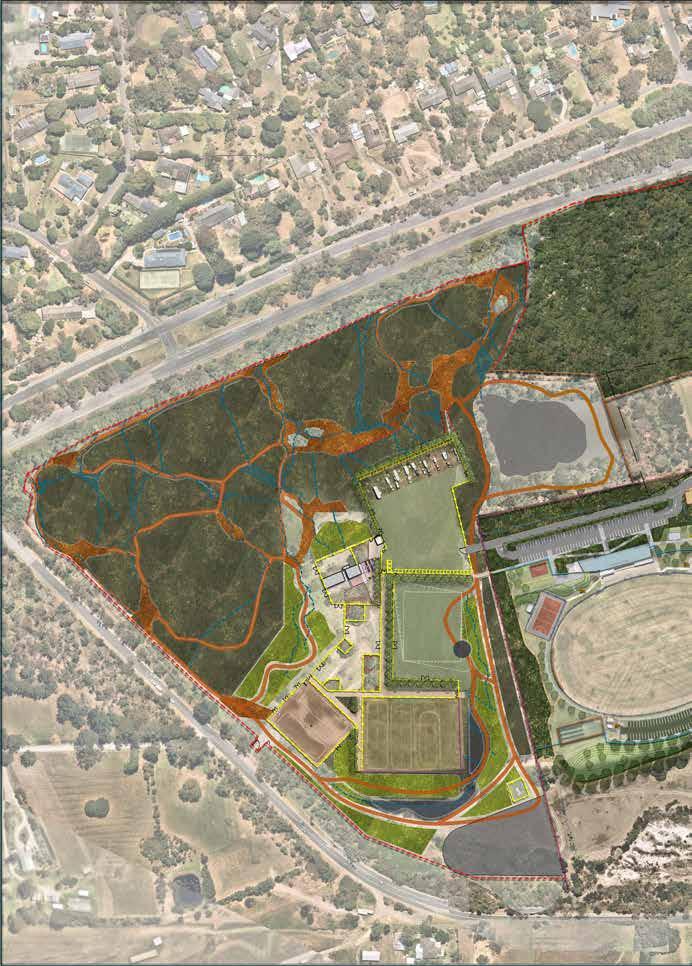 The Master Plan considers vegetation quality and key drainage lines on the site in relation to recreation facilities and other projects such as the DEECA Dam site and the future Melbourne Water retarding Basin.