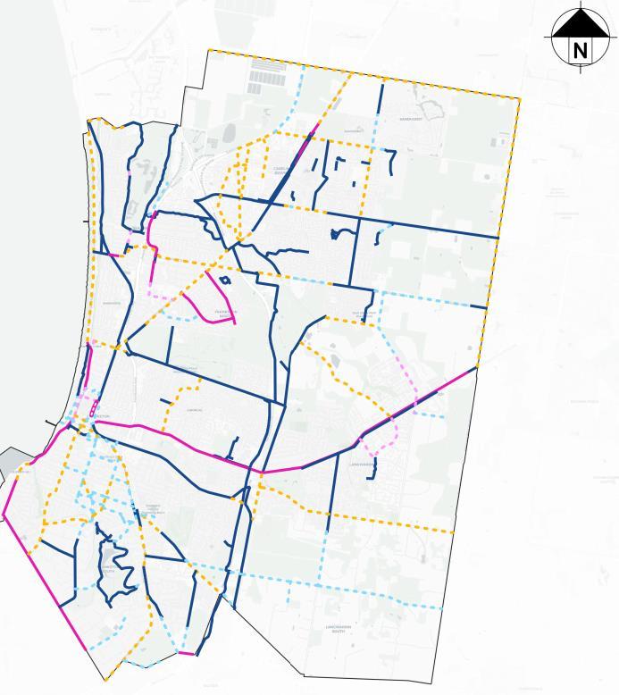 • Consideration of bicycle network design principles to ensure the network caters for all ages and abilities