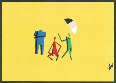 His first guess was that the painting depicted the seminal moment in Australian broadcasting history when colour television was introduced, with ABC stars Aunty Jack (Grahame Bond) in blue, Thin Arthur (Rory Donoghue) seated and Kid Eager (Garry McDonald) standing, with the umbrella representing the black and white world we had been sheltering under.