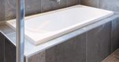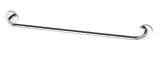 Semi framed shower screens with powder coated aluminium frame (polished silver finish) and clear glazed pivot door.