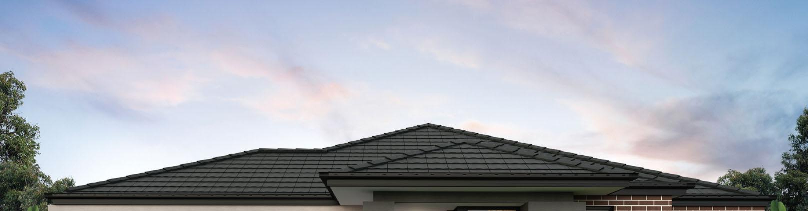 Dark colour on roof tiles from builder’s predetermined colour boards to meet 7 star energy rating.