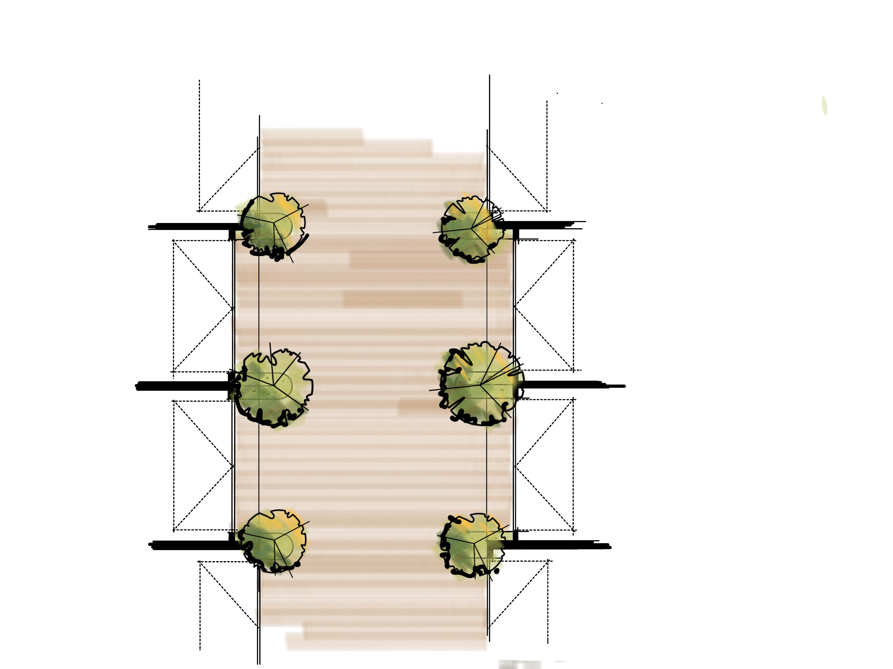 1. Front gardens should be planted with a minimum of one tree per standard residential lot frontage combined with understory planting. The tree should have a minimum mature height of 4m and be planted as a 45 Litre pot size or greater. The tree species selected to be a suitable/similar mature canopy width to match the dimension of the front set back. E.g a suitable tree for a 1.5m setback may be Pyrus calleryana 'capital' which has a mature width of 1.5m.