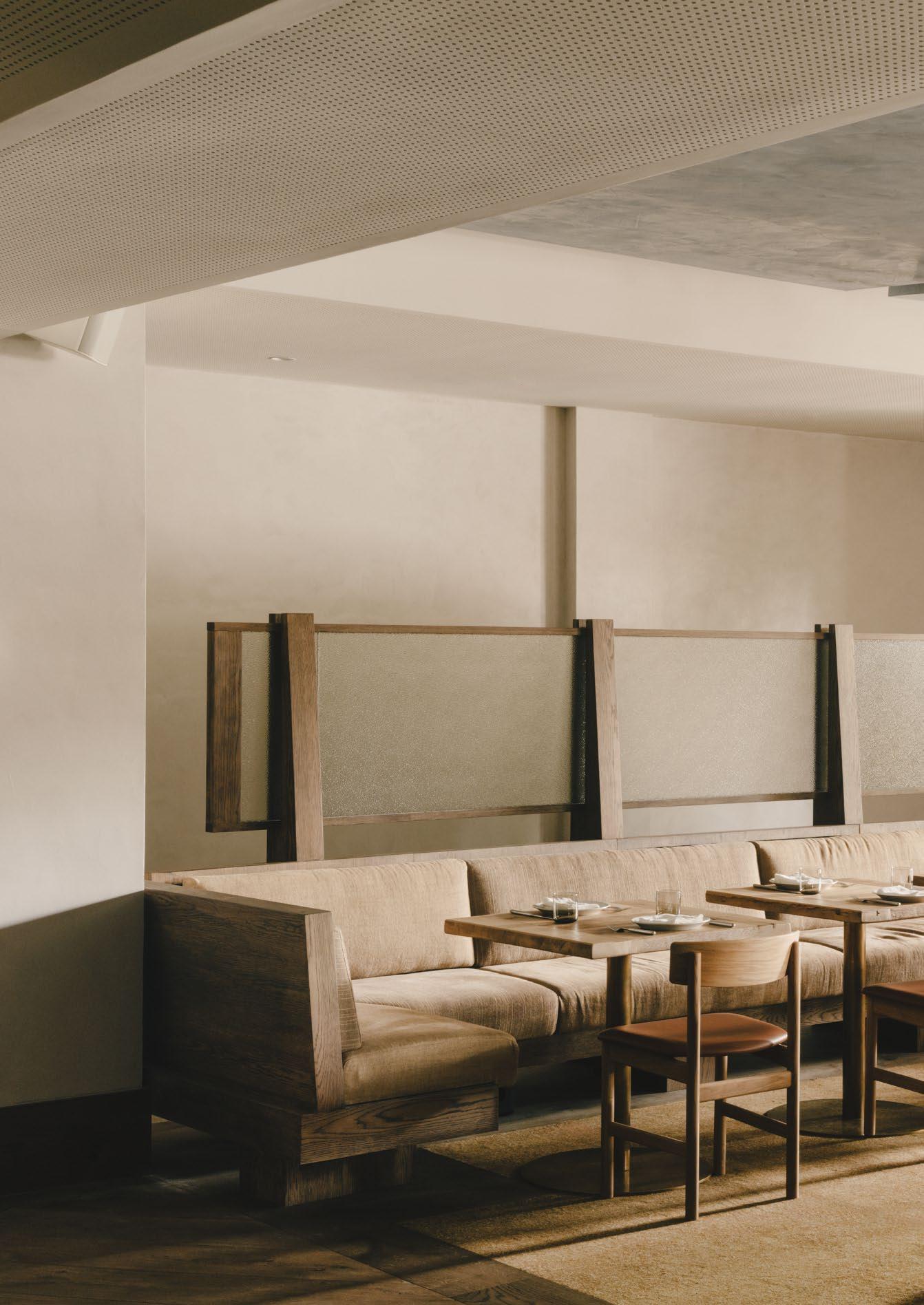 AA: There are so many little details in Bobe that we’re fond of: the aforementioned copper table numbers, the unique textile hangings in the windows — every one of which has a motif that’s specifical to its place and its view, the unique handles on the wait stations, which are handcast from the recycled aluminium of Volvo rims, and the patterned arch curves that are echoed in the restaurant’s drawers, shelves, and benches. But perhaps we would say that our favourite detail in Restaurant Bobe is the precise craftsmanship in the interplay between the natural materials and every design element. We’ve worked hard to ensure harmony in every aspect — from the organic wooden surfaces to the tailor-made furniture. The life and character of the space come out in all the little, nearly invisible details, each supporting the overall atmosphere of timeless quality.