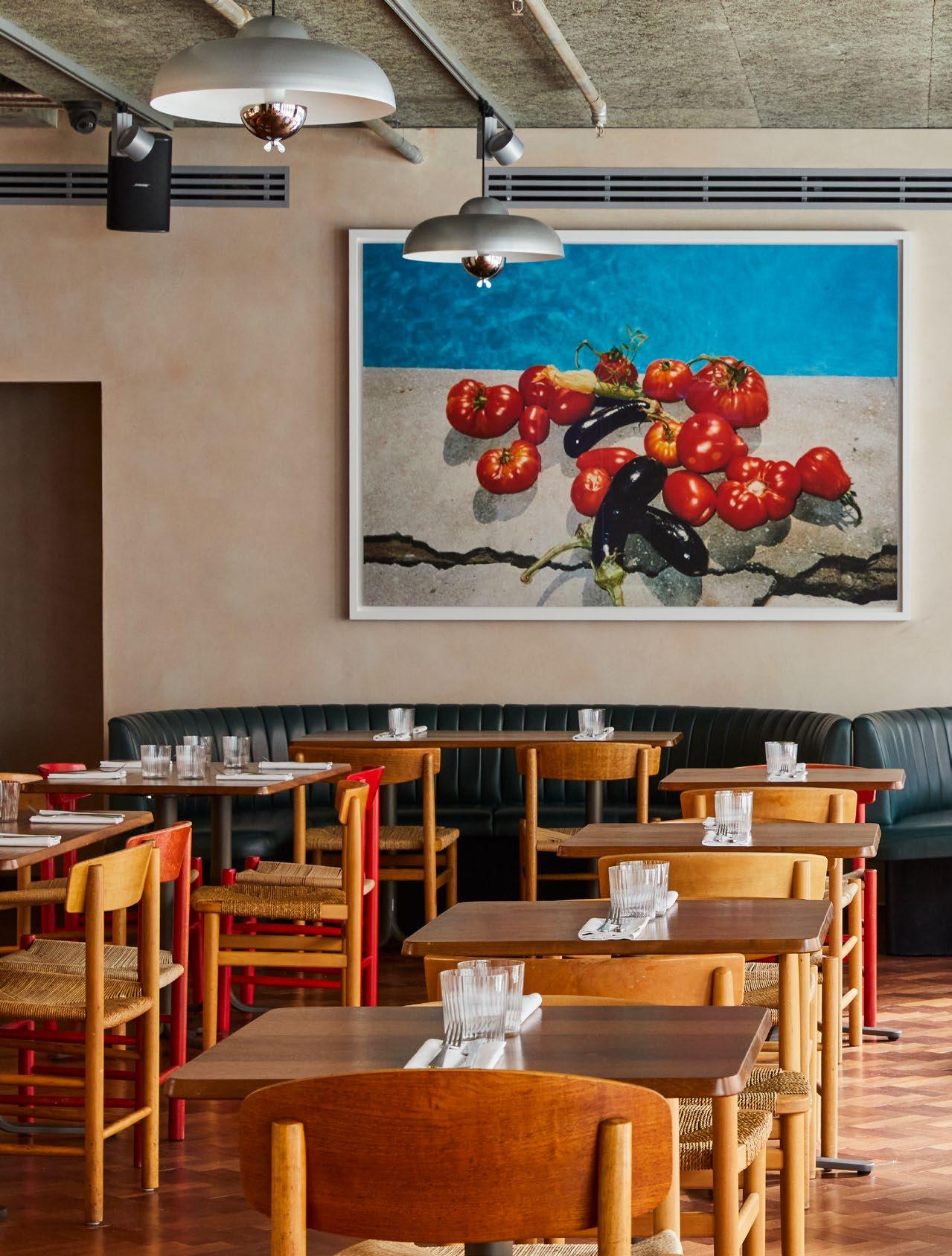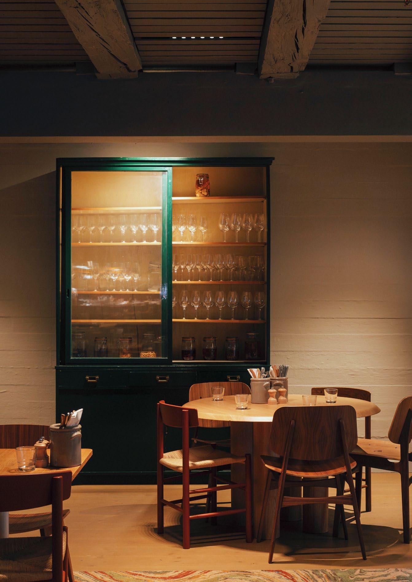 AA: We chose to recycle elements such as Mogensen’s J39 chairs because they bear the story that gives the space its soul. They were a part of Peder Oxe, an iconic restaurant with a long and rich life, and by integrating them, we are bringing the warmth of that past into a contemporary design. This particular lightly-smoked, oak version of the J39 Chair was designed especially for the space years ago, and we found it just as relevant today. We modified them with a slight extension to the legs, elevating them to the contemporary dining height, and we gave all of the chairs a thorough refurbishment so they’ll be ready for many more years of use. Recycling is an homage to the original craftsmanship and a way of creating connections between the old and the new. Another iconic element at Peder Oxe was the unique pendant lights that hung over every table, all with a box with the table number on them and a little green lamp that you could switch on when you needed something from the waiter. We have reused all of the glass lampshades in the wine cellar, and in certain places in the restaurant, we fastened the table numbers to the floor like little remembrances. So, when you’re dining at Restaurant Bobe, you might see a small copper plaque with the number 12 on the floor, and if you frequented Peder Oxe, you’ll recognise this salute to the space’s former self.