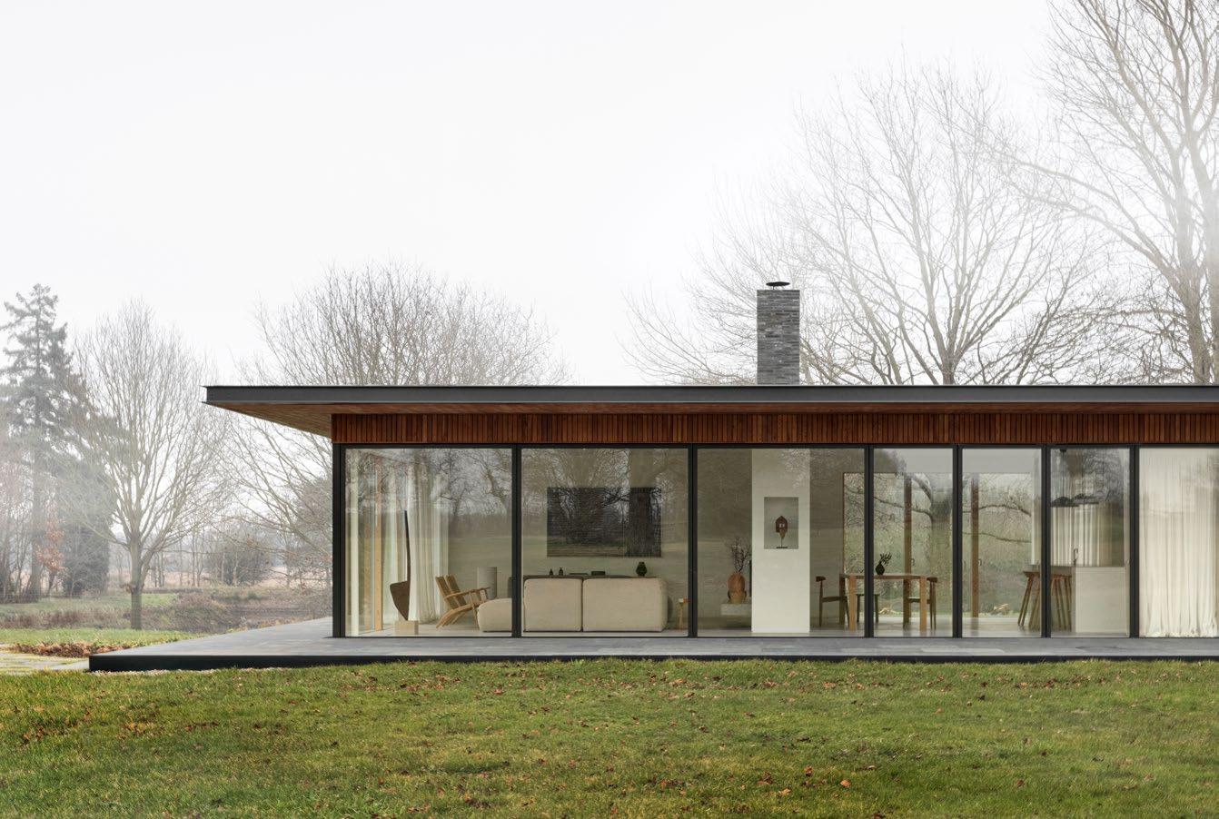 With the large windows and the flat roof, finding the right balance between bringing nature into the residence and simultaneously creating a feeling of privacy and comfort was essential. We didn’t want the house to feel like a “glass box” – especially as the English landscape can deliver harsh weather and overwhelming light.