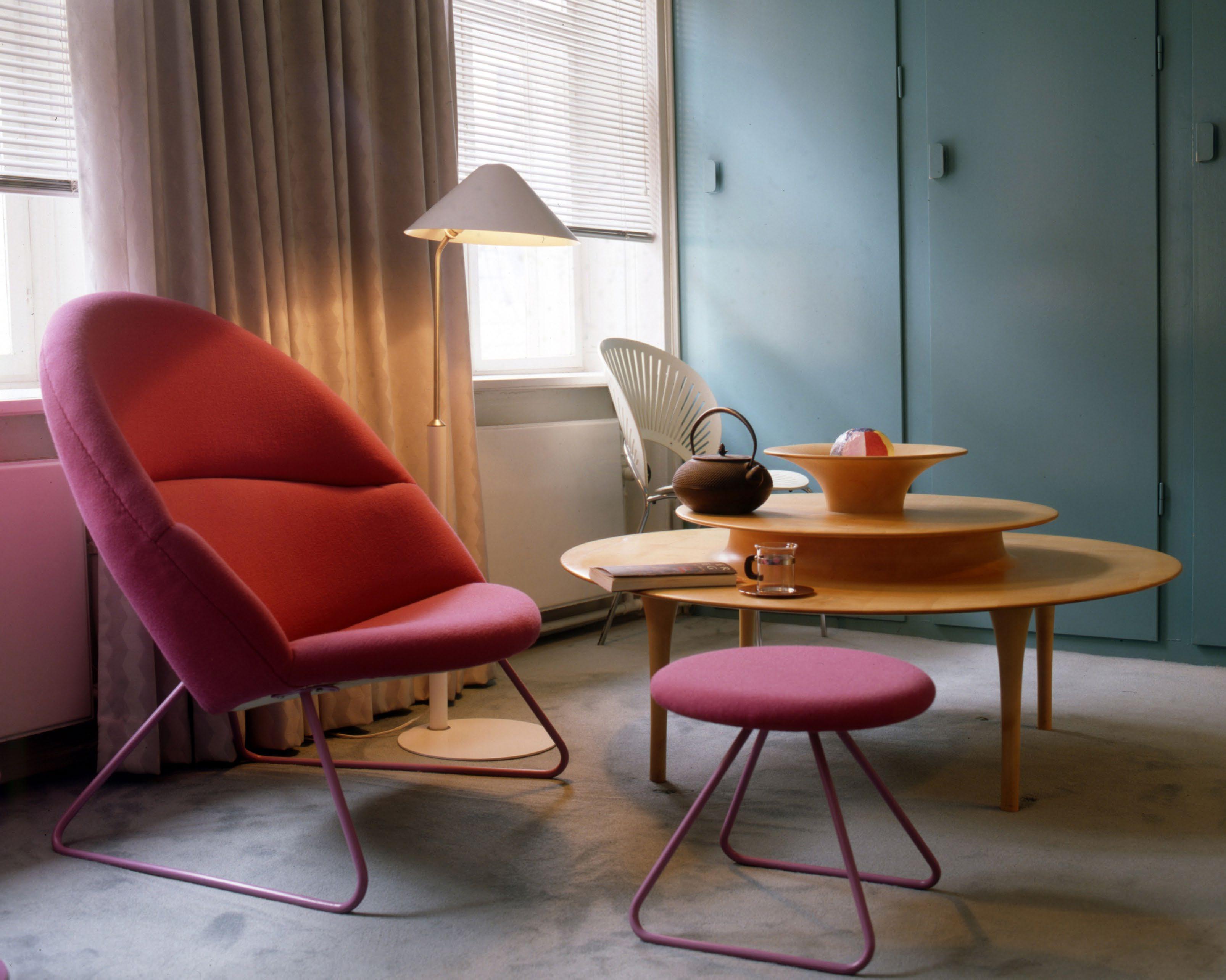 Nanna Ditzel has deservedly positioned herself in the history of design due to her many striking and innovative designs across centuries and disciplines. Being a generation after legendary architects and designers like Børge Mogensen and Hans J. Wegner, Ditzel also studied under the master architect and designer Kaare Klint at the Royal Academy of Fine Arts after graduating as a cabinetmaker and while studying as a furniture architect at the School of Arts and Craft. Even though schooled by Klint and his modern functionalism, Ditzel quickly broke out of the strict and formal design rules going for poetic and sculptural shapes rejecting the “masculine” ideals in favour of softness and rounded shapes. Experimenting with intense colours, new materials and the norms of space and design, she was challenging traditional thinking with her prolific output throughout decades. Leaving a clear mark on both private homes and public spaces and making her a distinctive voice and one of the most accomplished Danish designers spanning over 60 years as a designer from furniture and jewellery to silverware, glass and textiles being the first woman to design for Fredericia, Kvadrat and Georg Jensen.