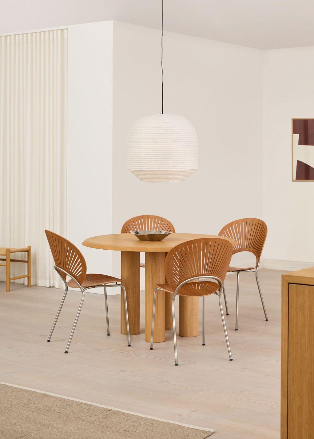 M Her jewellery is gorgeous, and her Hallingdal textile has proven its worth over the years. In addition, the colour composition and her collaboration with DSB and the IC3 trains was a fantastic design accomplishment. But my favourite is the Trisse table from 1962. It is playful and sculptural with a simple design. Your hand can grip the pedestal and lift the table. It’s perfectly proportioned for the hand’s grip. It is a stackable “building block” with a completely undefinable spatial potential that can be scaled up or down. It can be one object but also 100 objects in a spatial sculpture, forming an entirely different use. For me, it is scaleless while staying incredibly one-to-one with the body, and that’s an exciting twist.
