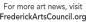Frederick County Government with the Frederick Arts Council Presentation and Discussion for Potential Public Art on the Ballenger Creek Linear Trail — 5:30 p.m. to 6:30 p.m. at The C. Burr Artz Public Library, 110 E. Patrick St., Frederick. Discussion points include an overview of the FAC’s Public Art Master Plan and vision for public art across the county, a summary of the art selection and evaluation process, and an exploration of inspiring examples of public art from across the world along nature trails, as well as review of feedback from a recent survey about attitudes regarding public art on the trail. Register online. tinyurl.com/w6fm3jy6.
