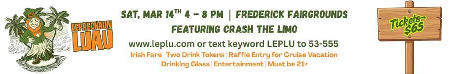 Make a Leprechaun Trap — noon to 1 p.m. at Catoctin Creek Nature Center, 2929 Sumantown Road, Middletown. Frederick County Parks and Rec. is hosting a fun event for kids ages 4 to 7 to celebrate St. Paddy’s Day! Children will learn about a leprechaun’s likes and dislikes, then apply their knowledge to create a trap from recyclable materials, making their very own clever leprechaun trap. Register at https://bit.ly/ FCPRLeprechaunTrap.
