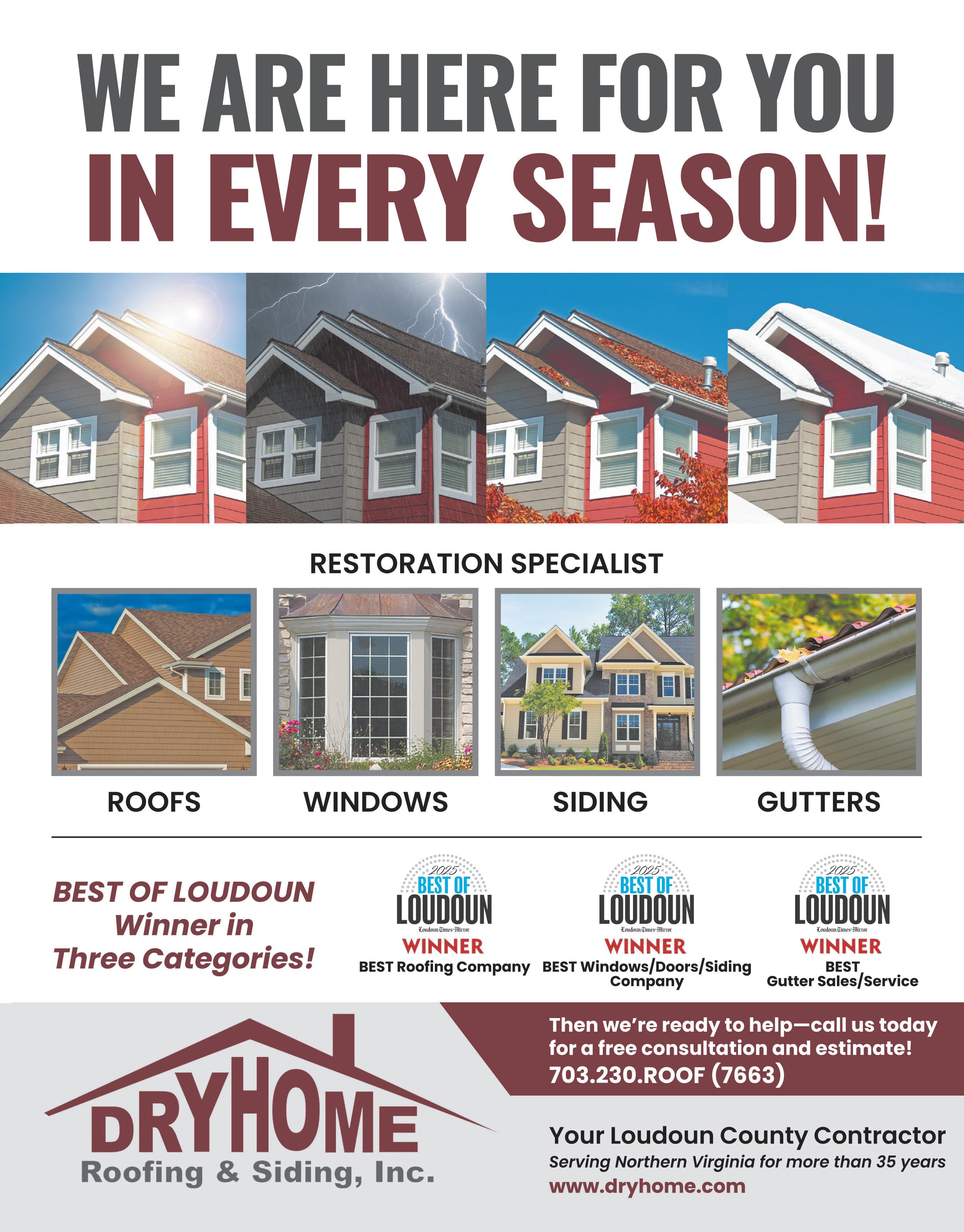 Today, as the company celebrates 62 years in business, Pond Roofing & Exteriors employs a team of about 50 skilled professionals who proudly serve homeowners across Loudoun County and Northern Virginia. The company specializes in roofing, siding, windows, and doors, combining time-honored craftsmanship with cutting-edge materials and technology to provide a seamless, stressfree experience.
